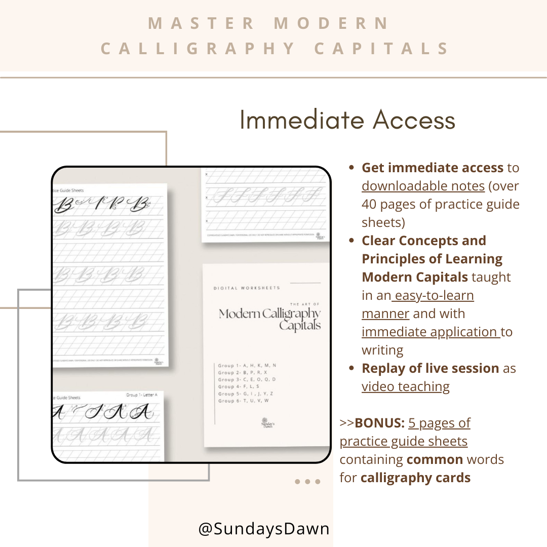 (3) Discover the how-to's of writing modern calligraphy capitals, understand the family of curves and be guided to practicing right in order to progress.