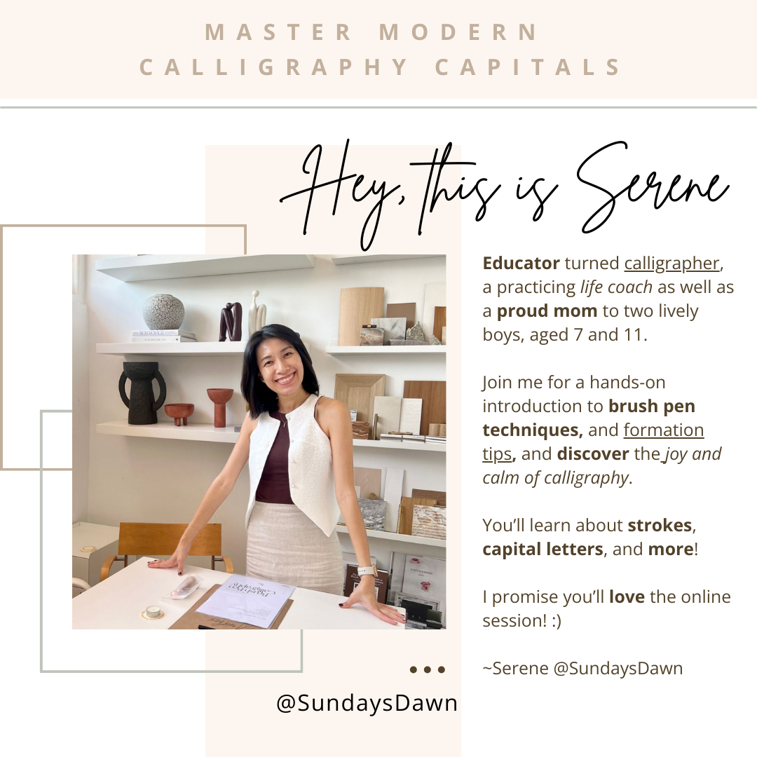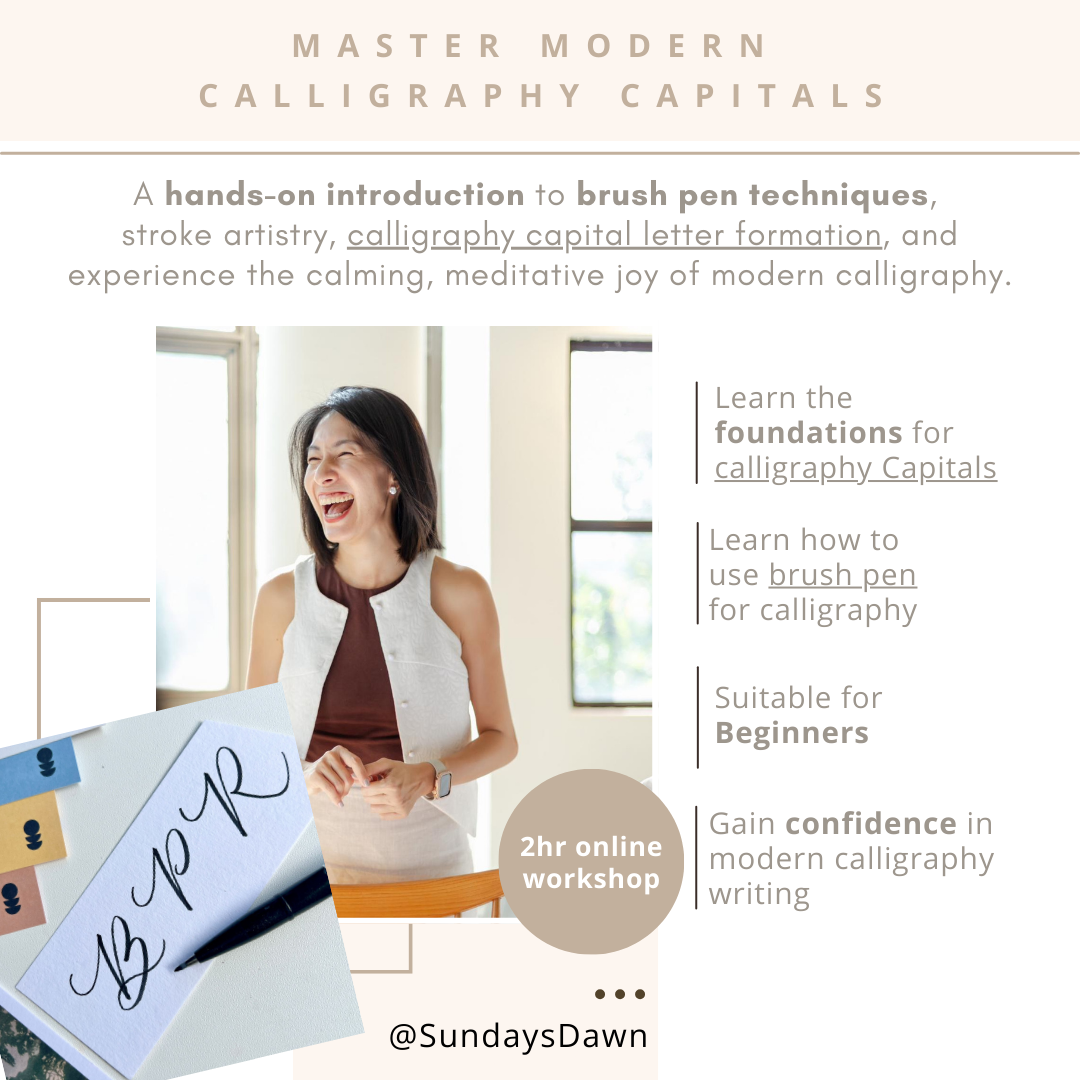 Absolutely, we all start somewhere! The best starting point is to JUST START! Gather your basic supplies: some quality brush pens (I highly recommend Pentel Brush Sign Pen) or just come with a pencil, print out the notes on normal 80gsm smooth paper, and watch through the digital video course. The Sundays Dawn guide sheets provided are designed to help you with letterforms of the majestic capitals! Through the digital course, you will be guided to start with simple strokes and basic drills to get a feel for your brush pen (or pencil) and its flexibility! And that is the beginning of something beautiful!