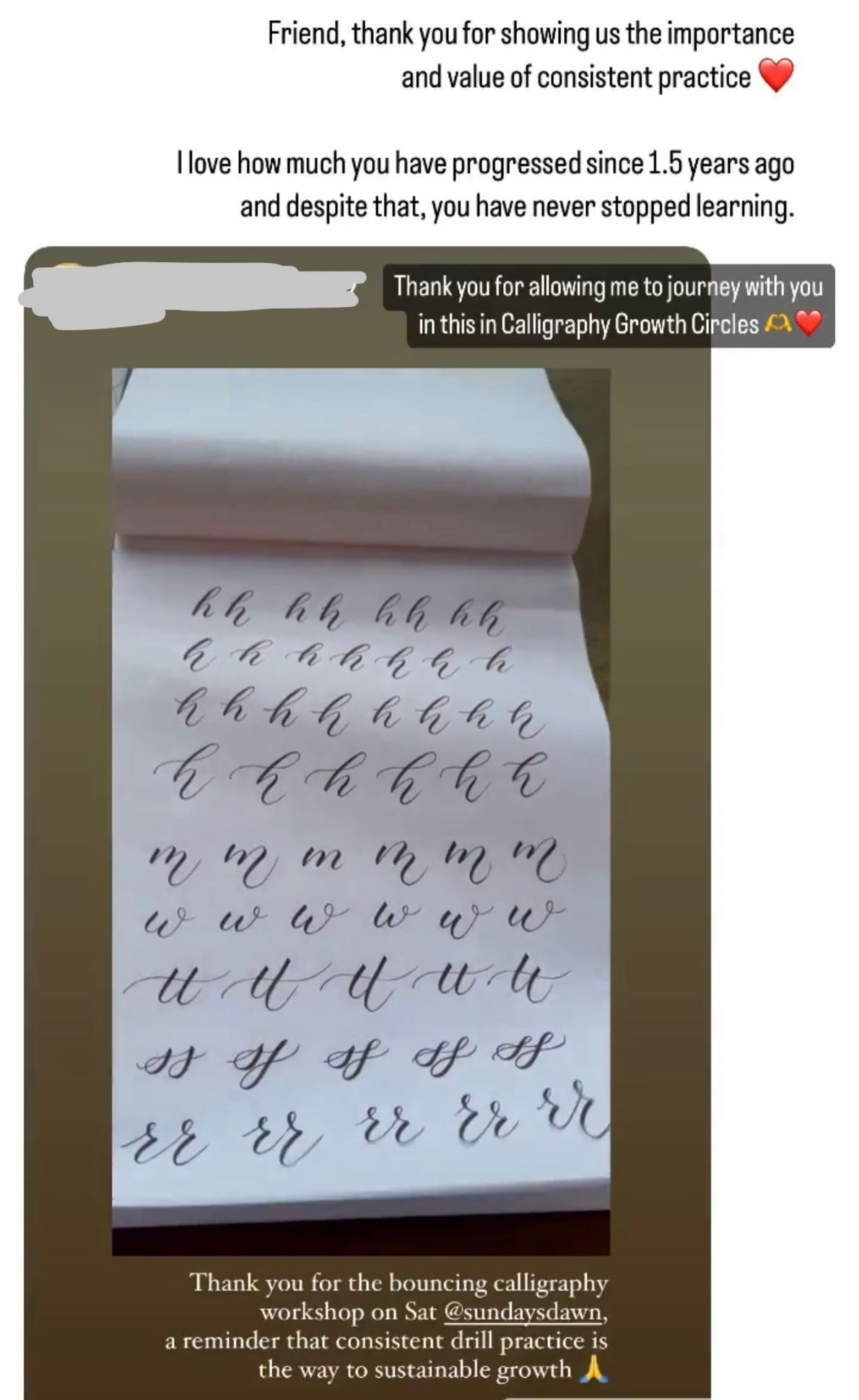 Oh, frustration is a familiar feeling for anyone learning calligraphy. The most important thing is not to give up. Be kind to yourself and remember that every stroke and every practice session brings improvement. It's about the process, not perfection. Embrace the imperfections as part of your unique journey in calligraphy. You'll look back and be amazed at your progress. Allow me to journey with you in this artform and let's be plugged into a community - Calligraphy Growth Circles that will help you GROW and be your cheerleaders in the whole learning process!